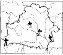 Место, где находится памятник архитектуры белорусских земель XIII в., представленный на иллюстрации, обозначено на картосхеме цифрой: