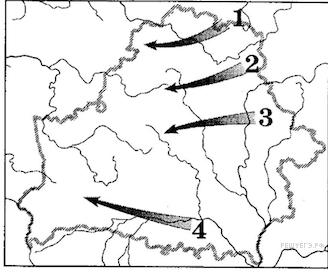 Направление удара 2-го Белорусского фронта под командованием Г. Захарова во время операции «Багратион» обозначено на картосхеме цифрой:
