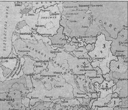 В соответствии с условиями Поляновского мирного договора (1634) к Российскому государству отошла территория Речи Посполитой, обозначенная на карте цифрой: