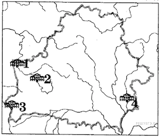 Дворец-усадьба Румянцевых-Паскевичей — памятник архитектуры классицизма — был построен в конце XVIII — начале XIX в. в городе, обозначенном на картосхеме цифрой: