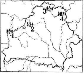 Западная граница, которая была принята Советским правительством согласно Брестскому мирному договору (1918), обозначена на карте цифрой: