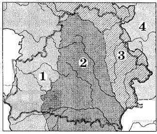 Территория, которая была присоединена к Российской империи в результате второго раздела Речи Посполитой, обозначена на картосхеме цифрой: