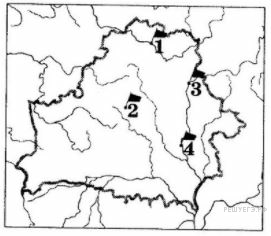Город, в котором во время немецко-фашистской оккупации Беларуси развернула деятельность подпольная группа под руководством К. Заслонова, обозначен на картосхеме цифрой: