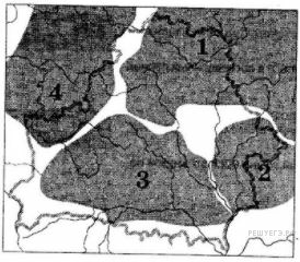 Запишите цифру, которой на картосхеме обозначена примерная территория расселения радимичей.