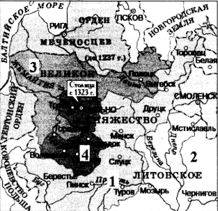 Территория, присоединенная к Великому Княжеству Литовскому (ВКЛ) Ольгердом, обозначена на карте цифрой: