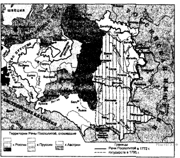 Речь Посполитая лишилась заштрихованной на карте территории в результате: